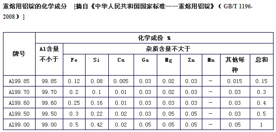重熔用鋁錠是生產(chǎn)鋁制品的主要原料,是一種質(zhì)量輕、耐腐蝕、易導(dǎo)熱導(dǎo)電、可延展、能循環(huán)使用的綠色環(huán)保型金屬材料,用途廣泛。